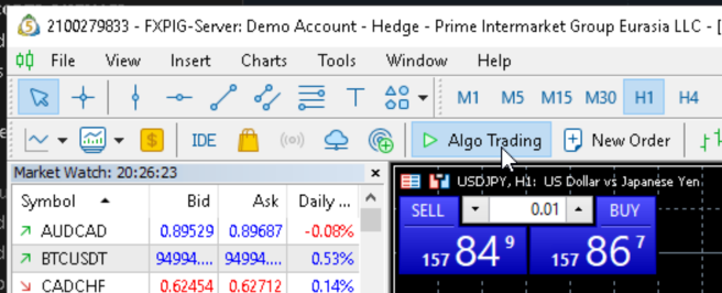 Please enable the auto trading or algo trading feature in the terminal settings.